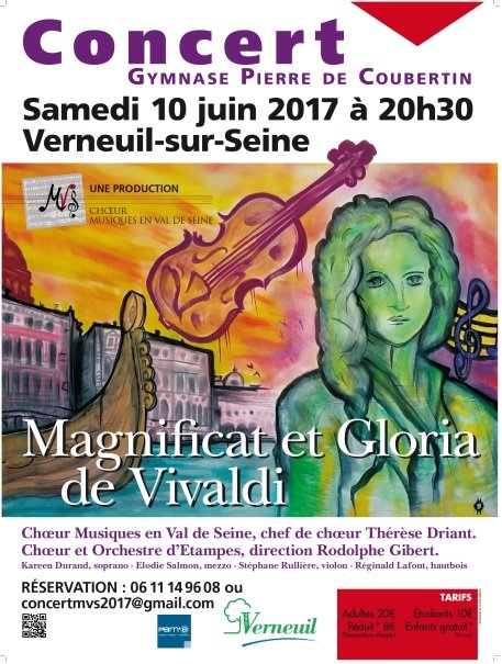 Juin 10 20h30 Musiques en Val de Seine présente Magnificat et Gloria de Vivaldi GYMNASE P DE COUBERTIN 10 rue Jean Zay, VERNEUIL-SUR-SEINE Évènement Details Get Directions