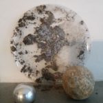 Gwendoline Robin joue avec les matières (terre, pierre, eau, air, verre, poudre noire…), dont elle explore les potentialités d’assemblage par la mise en place d’actions orchestrant télescopages physiques et réactions chimiques.