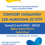 Samedi 2 avril à 20h30, les musiciens de Lviv enchanteront nos oreilles avec leurs plus grands airs de musique ukrainienne.