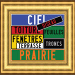 Se définissant comme un artiste plaquetitien, Joël Ducorroy travaille avec les mots et utilise la plaque minéralogique comme support.