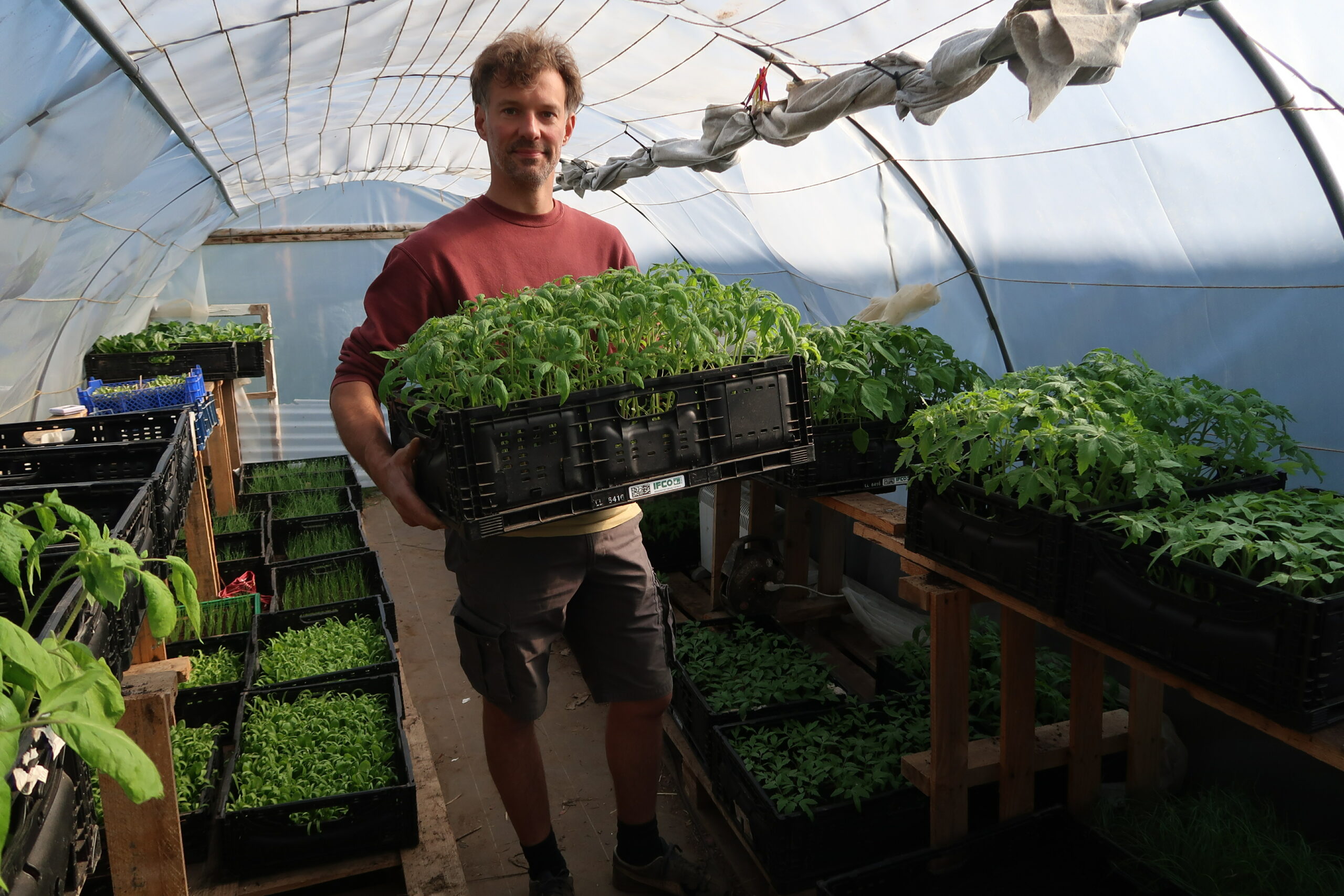 Ses jeunes plants de tomates, d’aubergines, de poivrons ou encore de courgettes seront repiqués dans quelques semaines. Un plus qui viendra compléter d’ici quelques semaines les paniers de saisons destinés aux adhérents de l’Amap.
