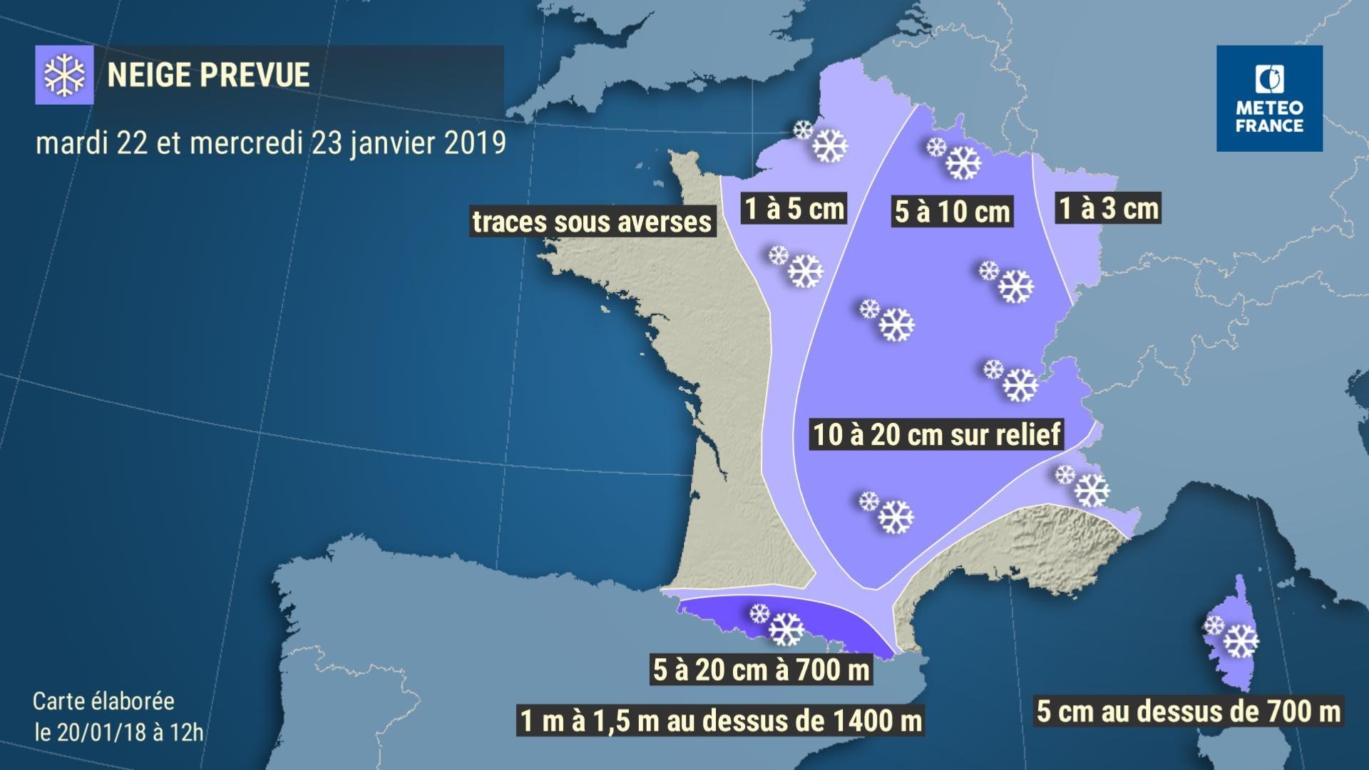 Une perturbation neigeuse, abordera la région par l’ouest mardi 22 janvier à partir de 5/6 h du matin. Elle doit traverser l’Ile-de-France en matinée. Cet épisode sera suivi d’un temps instable en soirée jusqu’à mercredi, avec des températures froides propices à des averses neigeuses ou pluies verglaçantes.