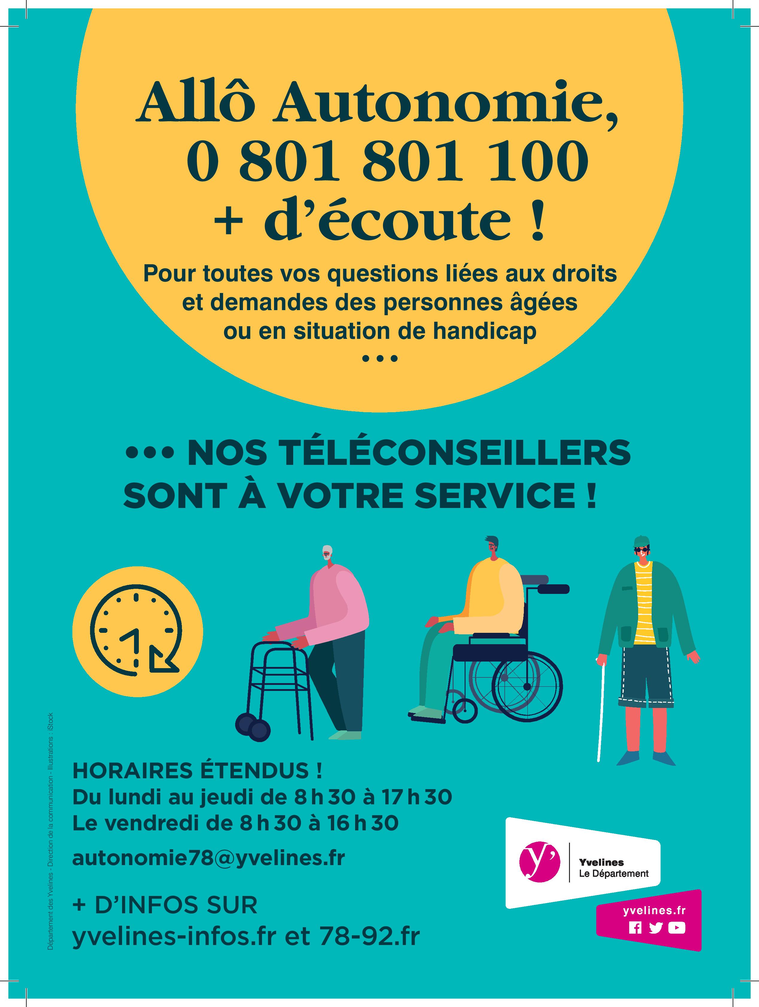 Le Département des Yvelines accompagne tous les Yvelinois en mettant à leur disposition une offre de services complète, variée, moderne et adaptée. Allô Autonomie est joignable aussi par mail à l’adresse suivante : autonomie78@yvelines.fr.