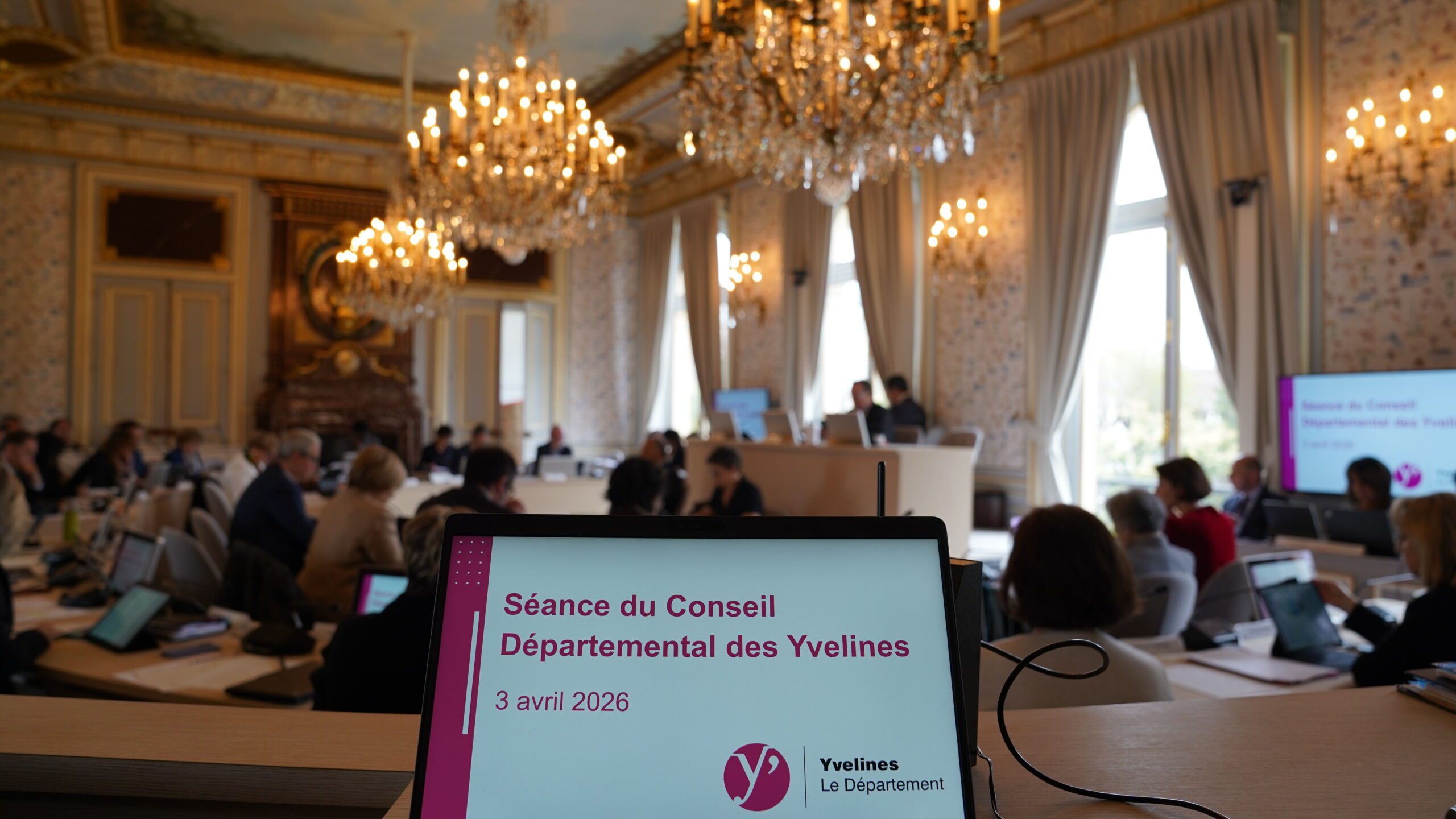 Vendredi 3 avril 2026, les conseillers départementaux se sont réunis pour une nouvelle Assemblée départementale à Versailles. Ils ont d’abord voté le budget (article dédié) puis à l’ordre du jour : solidarité territoriale, restauration et numérique dans les collèges, autonomie et culture avec le festival Yvelines Théâtre.