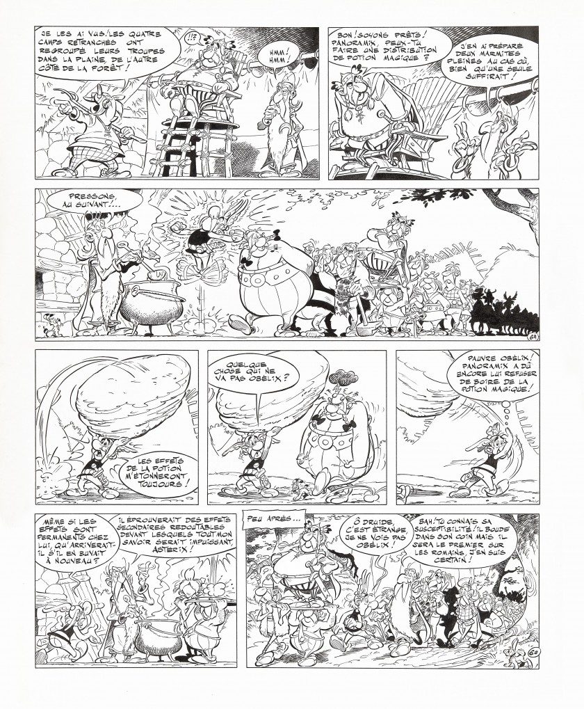 Les cinq planches sont des encres de chine sur papier des albums « La galère d’Obélix« , « Astérix et Latraviata » et « La rose et le glaive« . Les deux autres planches sont issues de Tanguy et Laverdure ainsi que d’Oumpah-Pah. Chacune des planches d’Astérix est estimée entre 80 000 et 120 000€.
