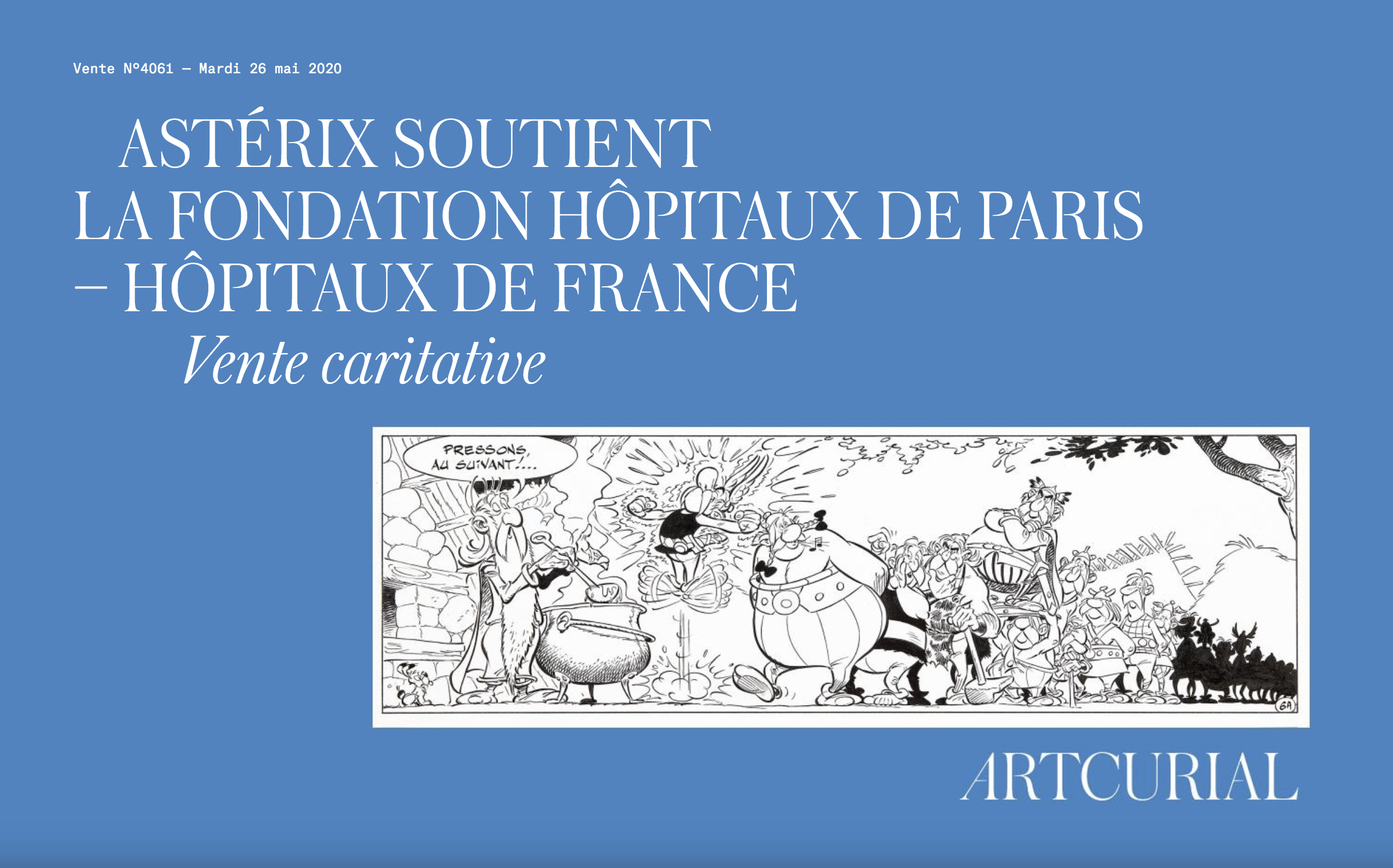 Albert Uderzo avait été très touché par la crise que la France commençait à traverser en mars dernier. Cette participation caritative est une façon de montrer sa reconnaissance au personnel soignant comme l’expliquent sa femme et sa fille. Les fonds collectés iront à la Fondation Hôpitaux Paris – Hôpitaux de France. Cet argent servira notamment à l’achat de matériel médical, paramédical, la livraison de repas chauds, la prise en charge de frais divers… Des tablettes pour les patients à l’hôpital ou résidents d’EHPAD pourront également être distribuées.