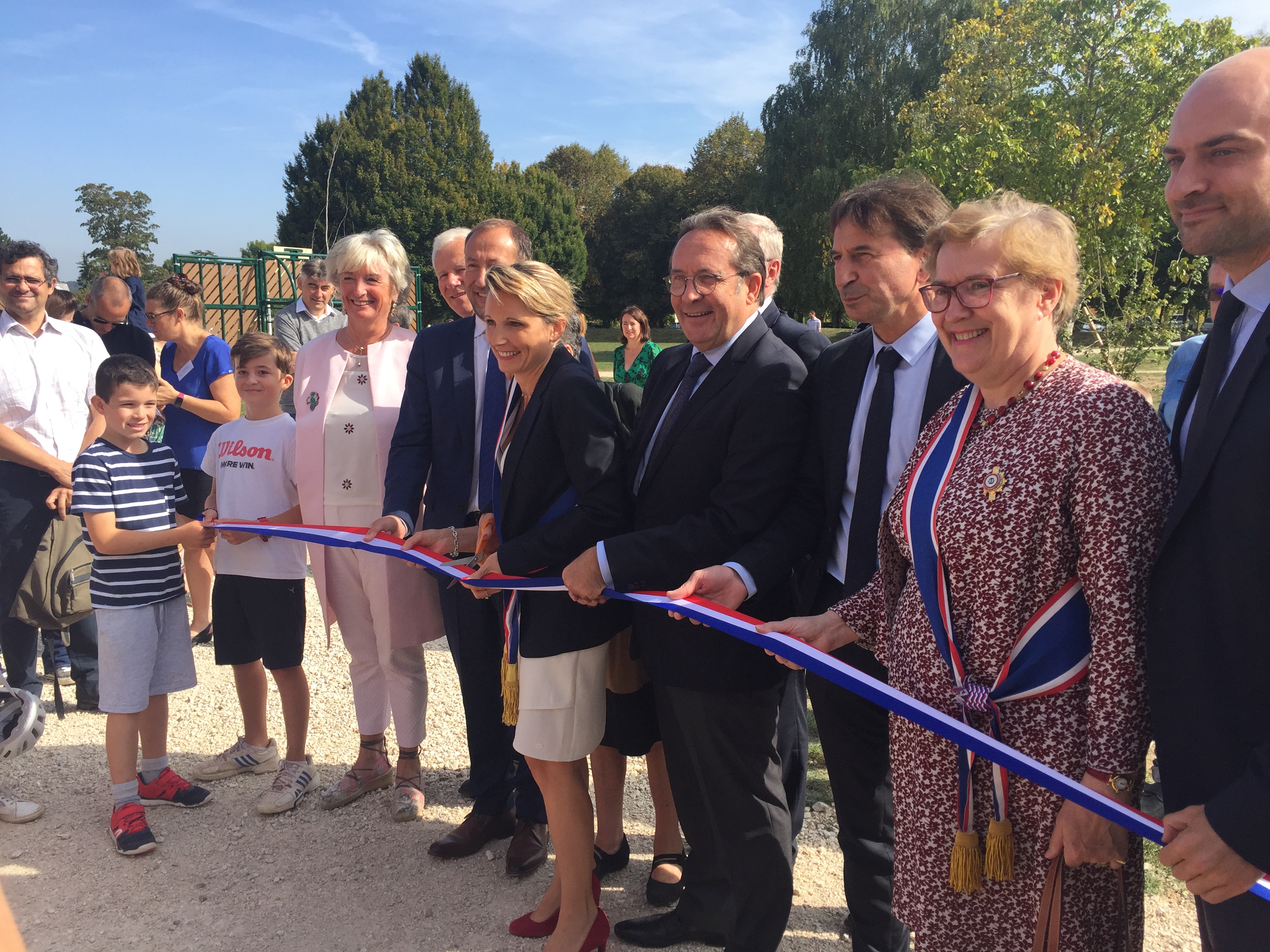Caroline Doucerain, maire de la commune, inaugure le parc Yvon Le Coz avec Pierre Bédier, président du Département des Yvelines. © CD 78/ C.Bringuier.