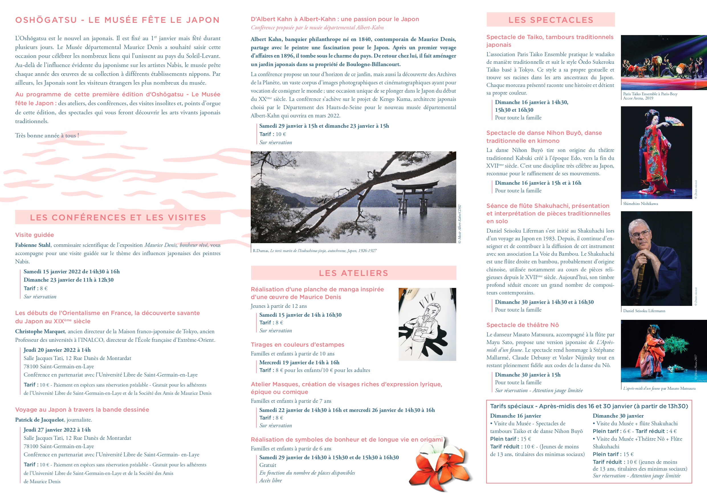 Du 15 au 30 janvier 2022, le Musée départemental Maurice Denis met à l’honneur ses nombreux liens avec le Japon à travers quinze jours festifs de spectacles, de conférences et d’ateliers artistiques.
