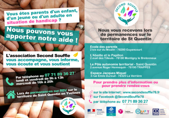 Dans le cadre du projet Trajectoire, soutenu par le Département des Yvelines, la CAF, la MSA, la Préfecture, le REAAPY (Réseau de soutien et d’accompagnement des parents), a été créé sur le territoire de Saint-Quentin-en-Yvelines, un dispositif itinérant d’écoute et d’information. Son objectif ? Accompagner les parents d’enfants en situation de handicap dans leur parcours, faciliter l’accès aux droits, orienter les proches aidants…