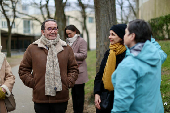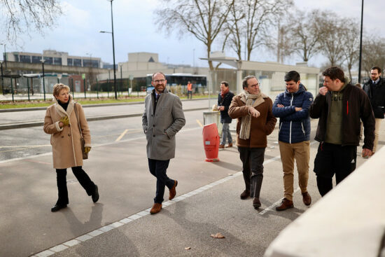 Autre objet de la visite, le Pont du Routoir à Guyancourt, un quartier dit « sensible » dont la transformation a commencé et se poursuivra pour améliorer l’habitat (rénovations énergétiques, constructions, végétalisation, création d’un terrain de sport…).