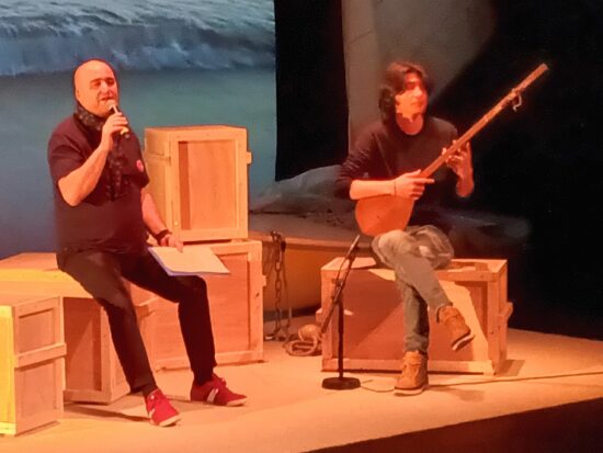 Fabrice Melquiot s’inspire ici de la vie du musicien afghan Esmatullah Alizada, qui interprète le rôle d’Aref et signe la musique du spectacle où dialoguent des instruments originaux : dambura (le luth traditionnel), harmonium et tablas. Un face à face sous tension, écrit intégralement en alexandrins !