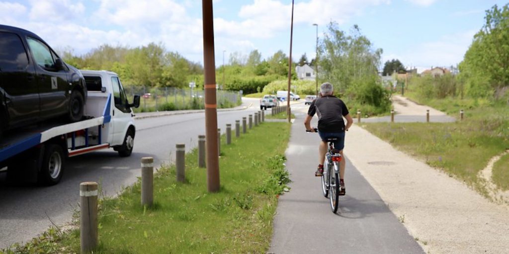 Avant, ici, il n’y avait que des camions stationnés le long de la route. Pour éviter ça, la municipalité avait mis des gros plots en béton. Avant de lancer les travaux d’une piste cyclable en entrée de ville à Méré, Hervé Rivoalen, responsable des travaux d’aménagements cyclables au Département des Yvelines, se rappelle l’ancien aspect du site. Aujourd’hui, une voie cyclable longe la RD 912, bordée de coquelicots et de fleurs des champs. Bien que la nationale 12 passe à proximité, cette voie qui mène à la gare est aujourd’hui sécurisée pour tous les modes de transport.
