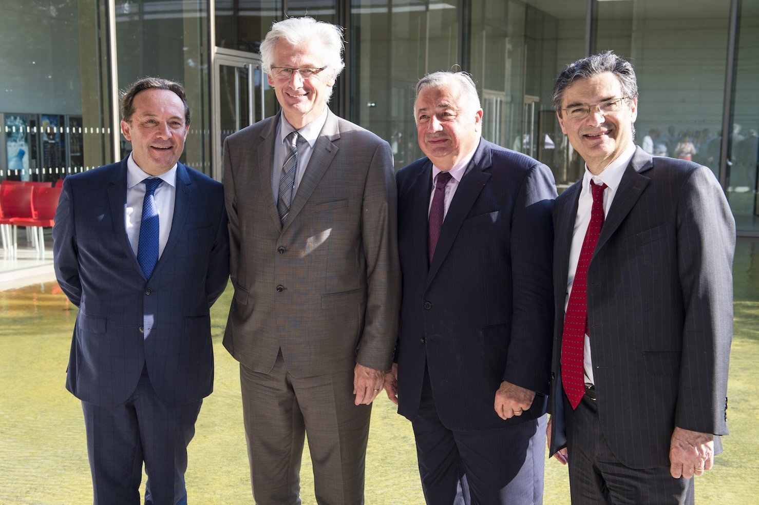 Pierre Bédier, Marc Robert, Gérard Larcher et Patrick Devedjian à La Lanterne, le pôle culturel de Rambouillet. Photo : Olivier Ravoire.