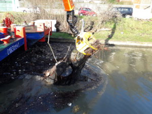 Sans attendre les services des Voies Navigables de France (VNF), qui, rattaché au ministère de l’Ecologie, gèrent les voies navigables, sont intervenus pour débarrasser les déchets bloqués à l’amont immédiat des écluses et surtout pour éviter d’éventuelles perturbations du trafic fluvial. L’opération a été effectuée les 5 et 8 février 2021 à l’aide d’un bateau grue. Pas moins de 250 mètres cube de détritus, soit de près 150 de tonnes, ont été enlevés par une entreprise, tout spécialement mandatée pour ce chantier par VNF.