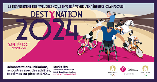 Le 1er octobre 2022, c’est au Vélodrome National que le Département des Yvelines vous donne rendez-vous pour la première édition de DestYnation 2024. De 10h à 18h, il vous sera possible de pratiquer et de découvrir de nombreux sports au cœur de l’enceinte retenue pour les Jeux Olympiques et Paralympiques (JOP) 2024. Une expérience olympique qui mettra cette année l’accent sur le vélo et sa découverte. Rien de tel que cet écrin, symbole de la vitesse, pour présenter les différentes pratiques du cyclisme. Et pour cela, DestYnation 2024 a mis les petits plats dans les grands.