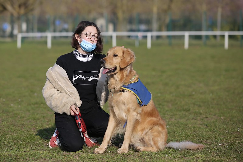 Nevez est un Golden Retriever qui exerce un métier : accompagnateur social pour les personnes en situation de handicap. C’est un formidable médiateur émotionnel. Le chouchou de ses patients, autistes, malvoyants ou déficients visuels.