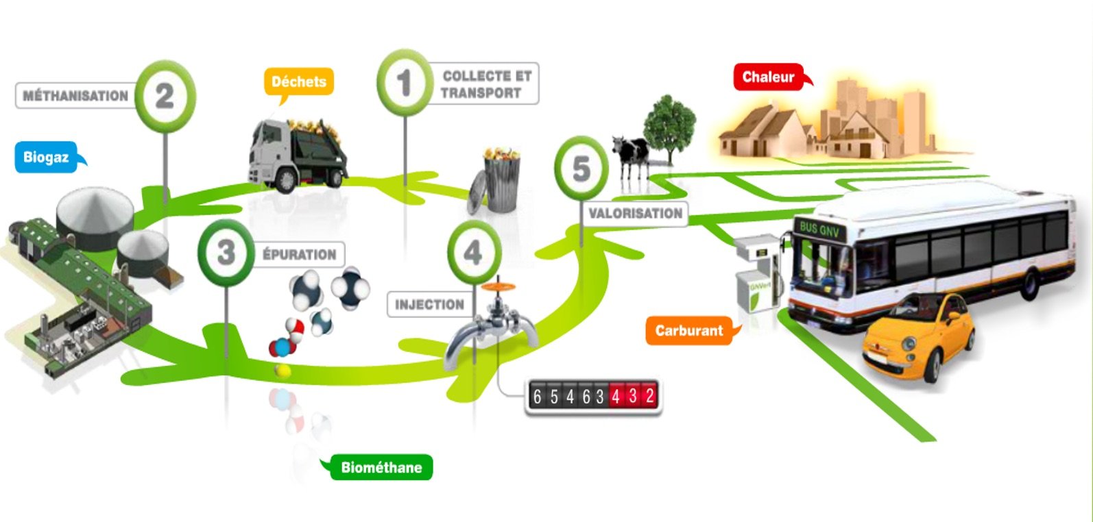 L’énergie injectée dans le réseau sera physiquement consommée au plus proche du lieu d’injection mais le caractère renouvelable de cette énergie pourra être valorisé par le biais de garanties d’origine, dans le cadre de projet de chauffage urbain ou de transport propre (GNV).