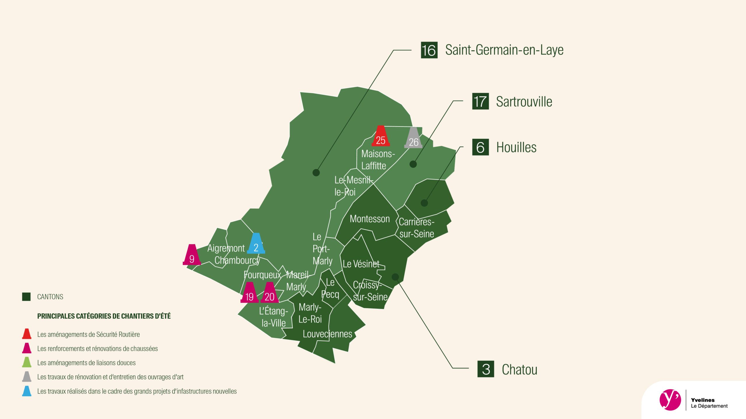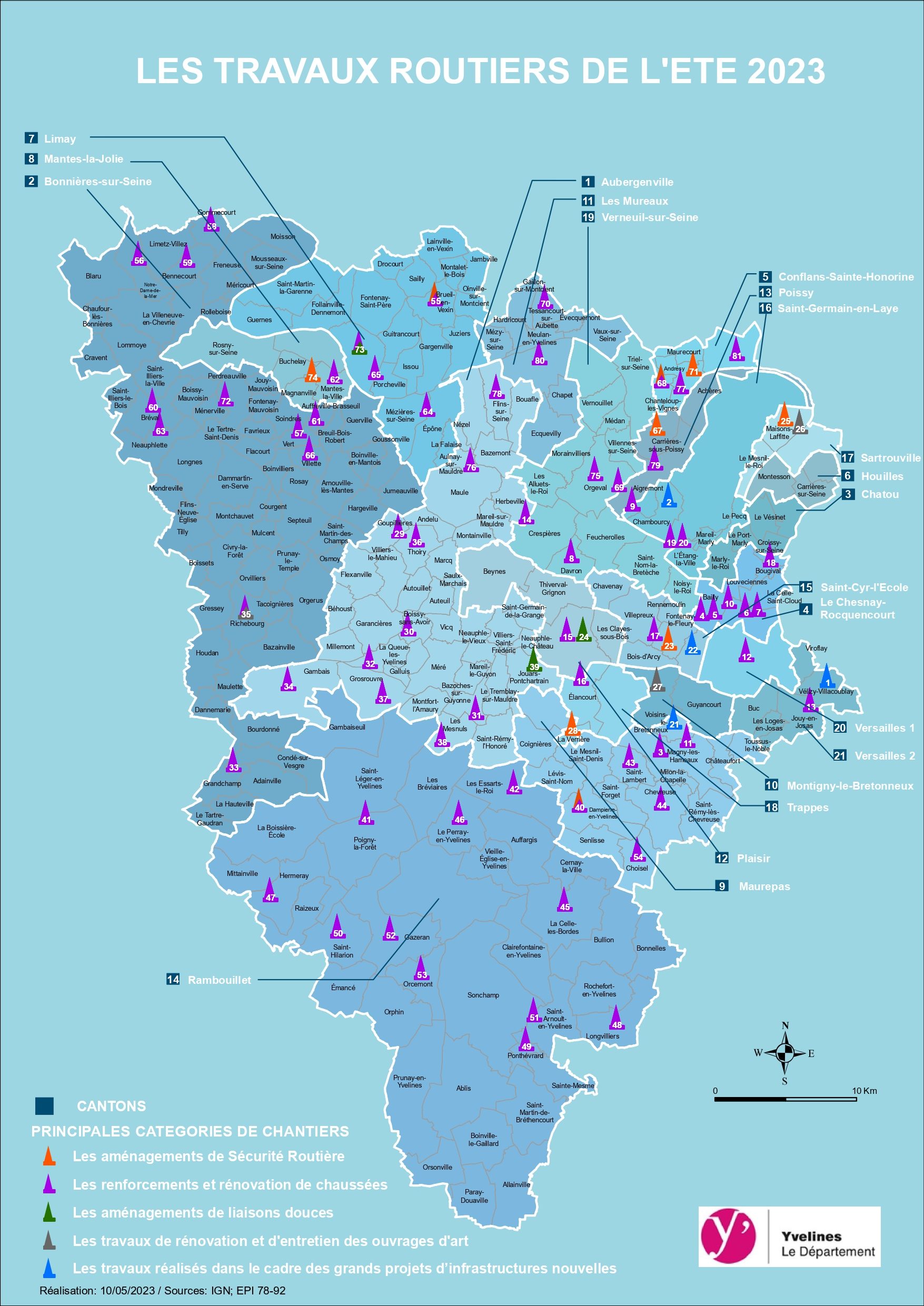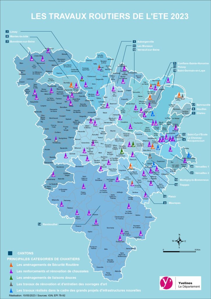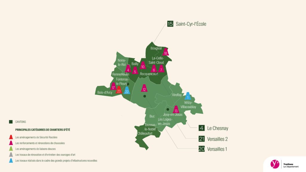 Vous l’avez certainement remarqué sur vos chemins quotidiens : les travaux de l’été ont commencé dans les Yvelines. Cette année le Département a lancé 81 chantiers répartis sur 95 communes. Découvrez la liste des travaux sur le secteur Yvelines urbain.