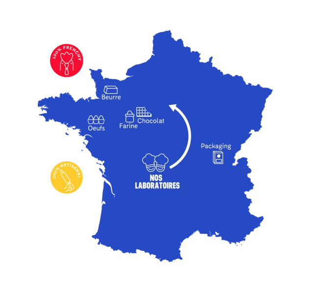 Le French Biscuit est cuisiné à partir de beurre AOP en provenance d’Isigny, mais aussi de cacao Barry réputé et utilisé par les plus grands. La farine est quant à elle issue du moulin de Versailles ! Le moulin se situe en pleine ville royale et les plus exigeants viennent s’y fournir. La famille Chaudé perpétue la tradition et la qualité est toujours au rendez-vous.