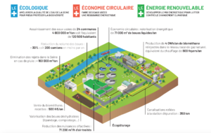 • Améliorant la qualité des eaux rejetées dans la Seine pour mieux préserver la biodiversité et le bon état écologique du milieu. Lors d’épisodes pluvieux, la réduction du rejet en Seine, est d’environ 160 000 m3 d’eaux usées.