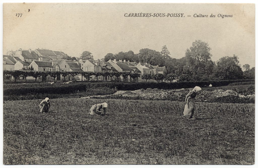 Dès l’été 1914, les hommes partent sur le front, en plein temps des moissons. Les femmes les remplacent dans les champs. Ce sont les premières sollicitées pour assurer le ravitaillement des troupes et des civils. Les travaux agricoles sont pénibles et faute de chevaux, réquisitionnés par l’Armée, elles labourent à bras nus, tirant elles-mêmes les charrues. Dans les terres agricoles qui s’étendent en Seine et Oise, elles se mobilisent sans compter leurs heures, aidées des enfants et des anciens.