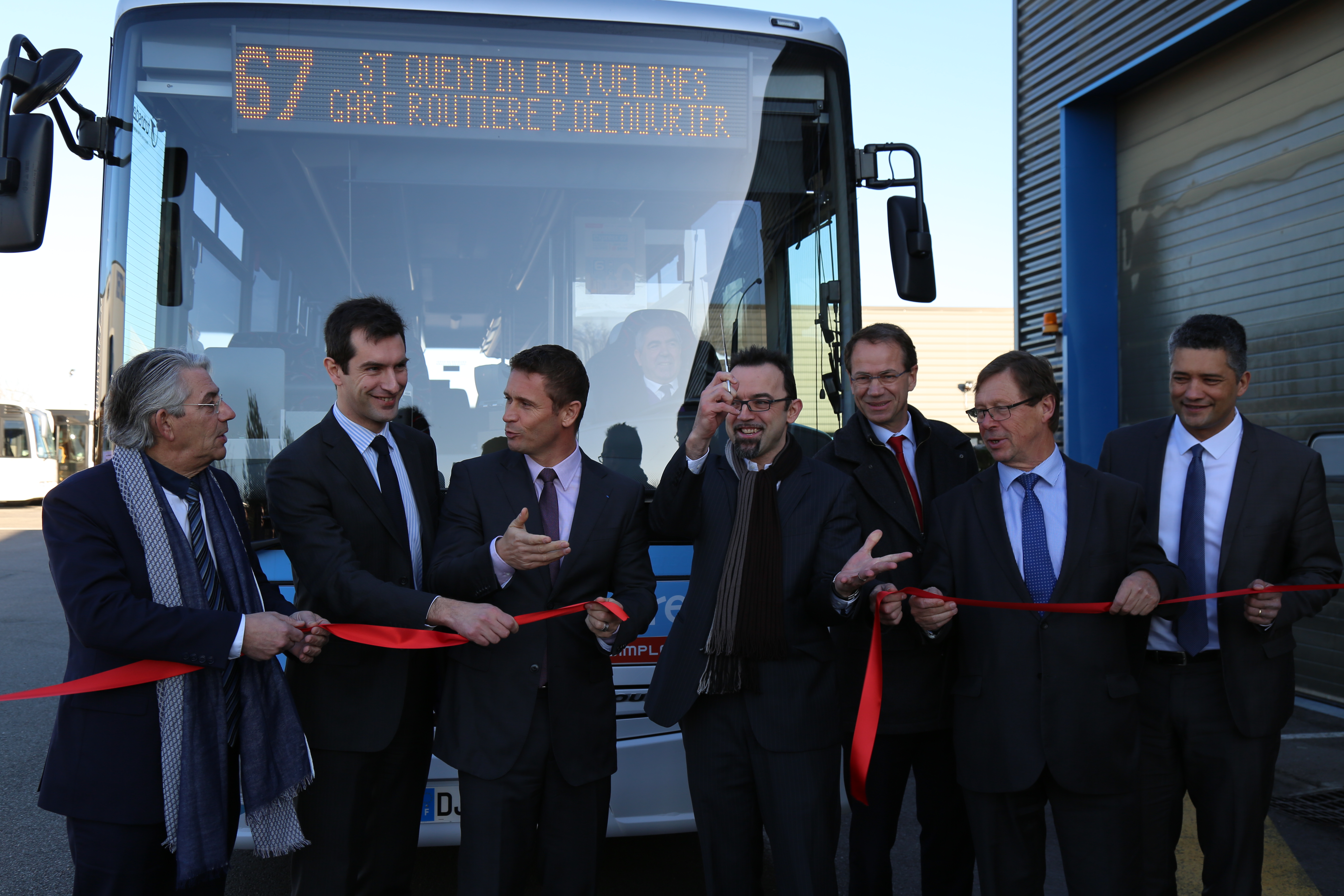 Mardi 16 février à Houdan, Jean-François Raynal et Jean-Marie Tétart et les représentants du STIF ont inauguré la nouvelle ligne de bus Express 67 au sein de l’établissement Transdev.