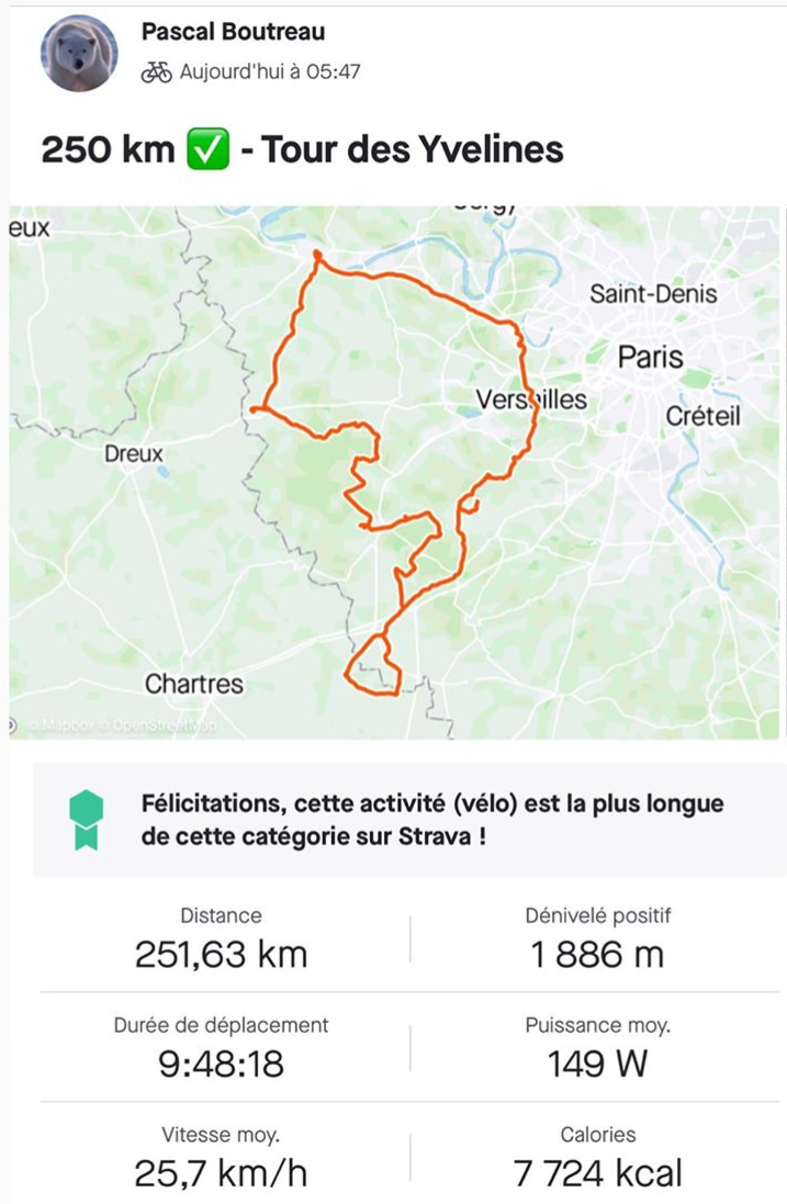 Il est 5h47 ce samedi 20 juin 2020 lorsque Pascal enfourche son vélo à Saint-Germain-en-Laye. Objectif : pédaler près de 250 km sur les routes yvelinoises à la découverte des richesses du département et finir (si possible) en beauté sur un marathon. Malgré la performance que cela représente, ce n’est pas la prouesse sportive qui intéresse Pascal mais bien l’escapade en elle-même.