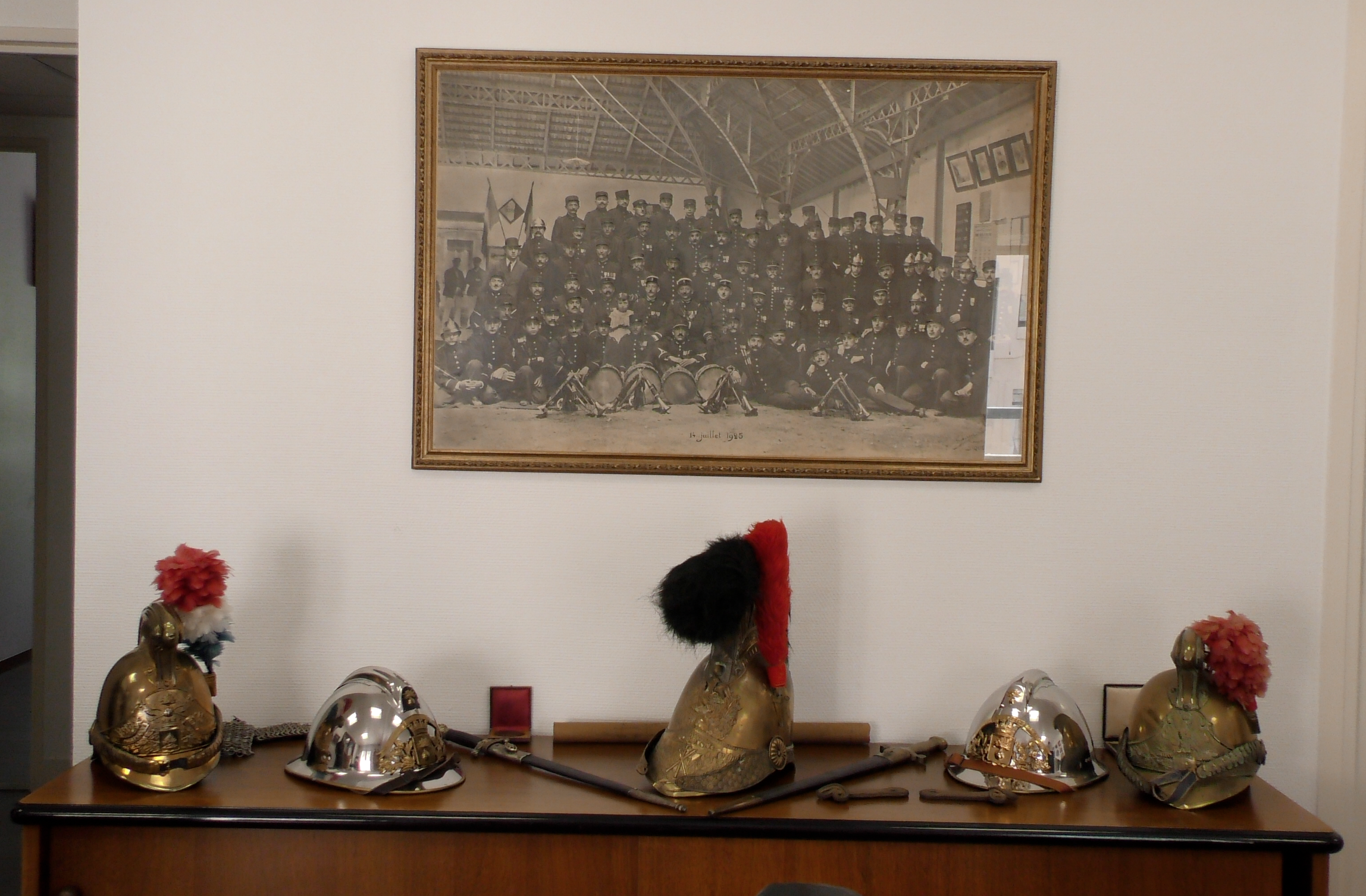 Entrer dans le bureau du nouveau directeur des services d’Incendie et de Secours des Yvelines, le colonel Stéphane Millot, c’est un peu comme de découvrir un musée. Outre un professionnel avec une grande expérience, c’est avant tout un passionné qui succède au contrôleur général Patrick Sécardin. Partout sur les murs, des casques, des drapeaux, des photos et des insignes ornent la pièce. Chacun de ces objets a une symbolique précise. Mais ce qui caractérise ce sapeur pompier francilien d’origine, c’est une vieille photo des années 20, accrochée sur tout un pan de mur. « On peut distinguer mon arrière-grand-père et mon grand-père qui posent au milieu de leur brigade de Saint-Quentin dans l’Aisne », explique le colonel Millot.