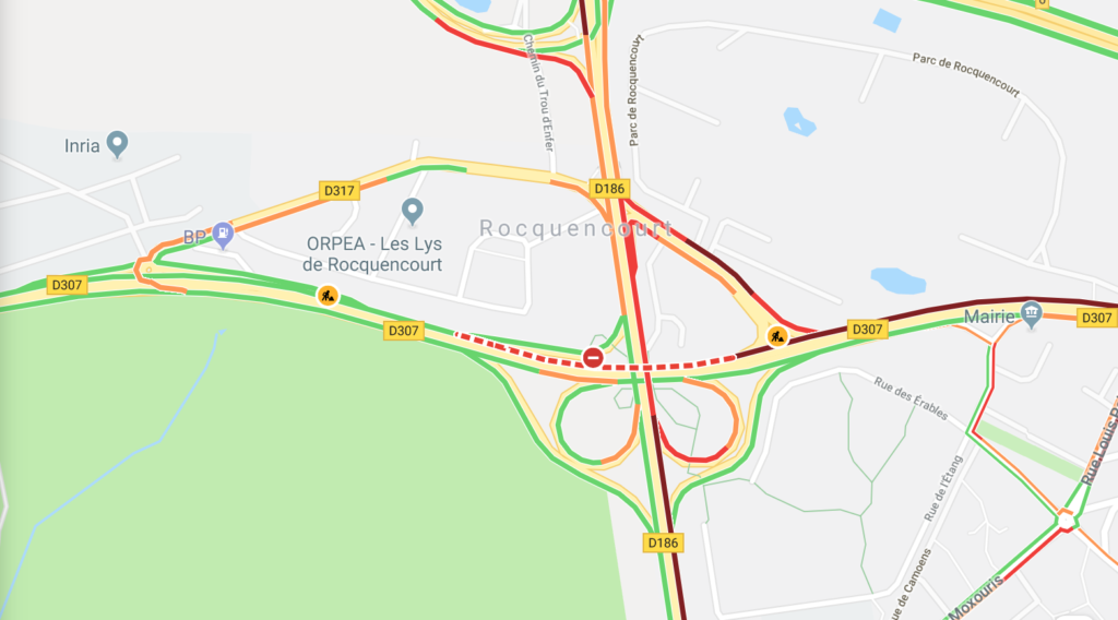 Une déviation locale est mise en place, nous vous invitons à emprunter la RD186, puis la RN186, à faire demi-tour au Pacha Club, puis à reprendre la RD307 en direction de Saint-Nom la Bretèche.