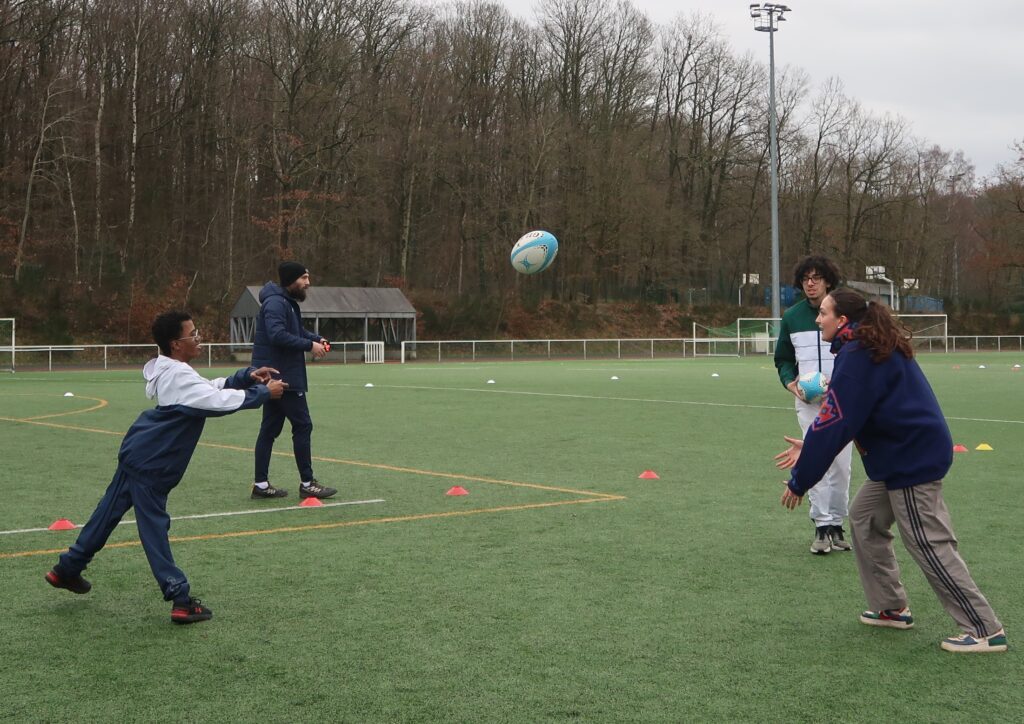 En plus des ateliers théâtre, les participants découvrent la pratique d’un sport, en l’occurrence le rugby en partenariat avec le rugby club de Versailles dans le cadre du dispositif ChampYons Clubs. C’est pour eux un plongeon en terre inconnue. « Je ne connais pas du tout le rugby, je ne sais pas comment on joue », confie l’un des participants. Afin de se familiariser avec la discipline, ils profitent d’une initiation.
