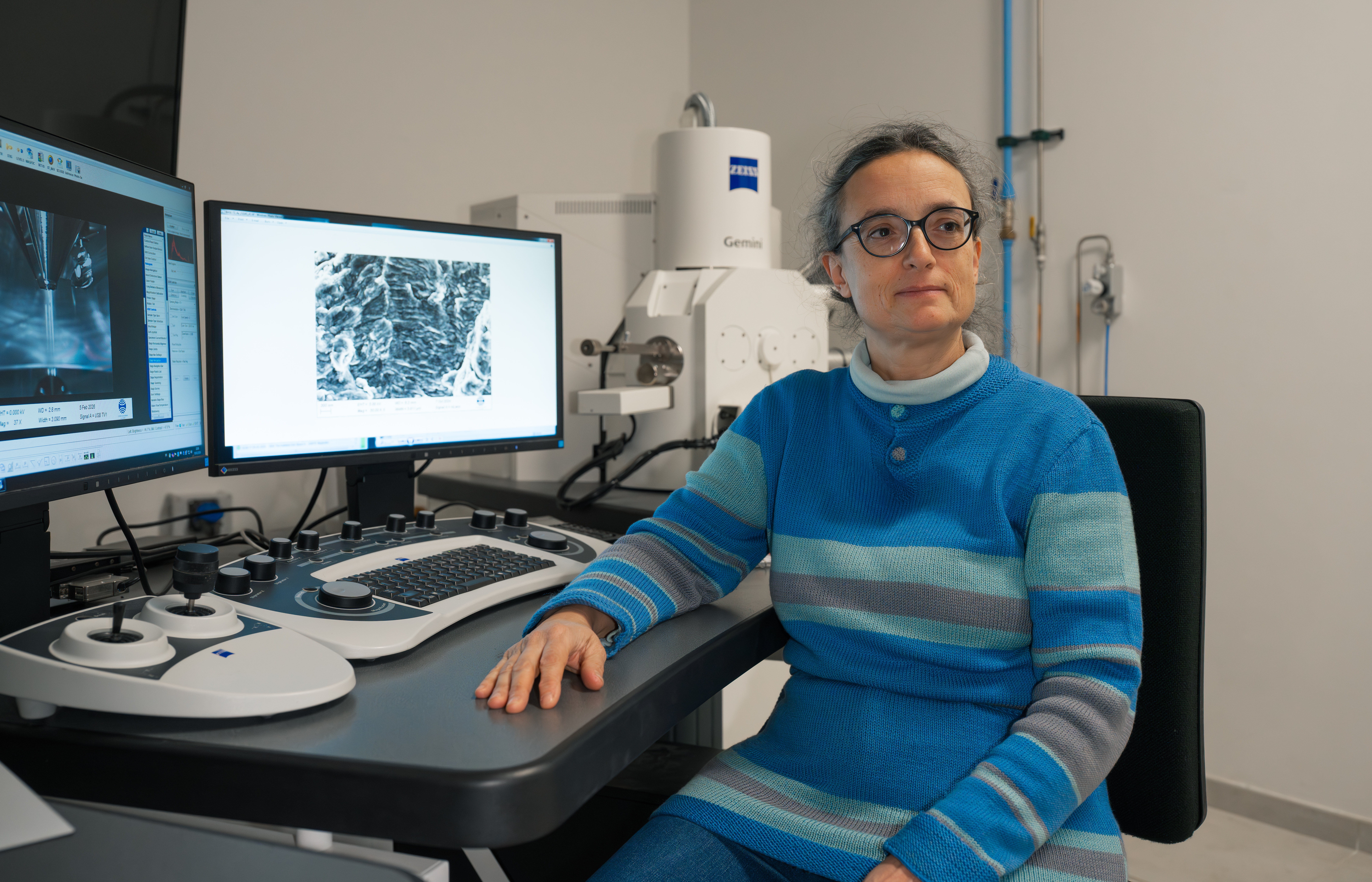 Les 13 000 m² du nouveau campus de l’École des Mines Paris-PSL sont un véritable labyrinthe qui n’a presque plus aucun secret pour Anne-Françoise Gourgues-Lorenzon. L’enseignante- chercheuse a, comme une bonne centaine d’autres scientifiques en 2025, pris ses quartiers au sein de ce bâtiment flambant neuf, financé par le Département des Yvelines, qui réunit trois laboratoires de pointe : le Centre des Matériaux (CMAT) ; le Centre Énergie, Environnement, Procédés (CEEP) et le Centre de Robotique. En cette journée internationale des femmes de science, Anne-Françoise nous guide dans un dédale de couloirs aux murs blancs et plafonds hauts. « La décoration est encore minimaliste, mais nous prenons petit à petit possession des lieux », souligne-t-elle. Après quelques vives enjambées, nous voici au cœur de ce campus dédié à la recherche et l’innovation. C’est aux côtés d’un microscope ultramoderne, relié à un ordinateur et à six écrans, que l’Yvelinoise nous conte son parcours, étroitement lié à l’École Mines Paris-PSL.