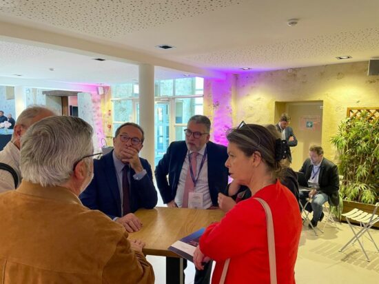 Pierre Bédier, Président du Département et Laurent Rochette, directeur de Seine-et-Yvelines Numérique échangent avec des élus yvelinois présents aux Assises de la Cybersécurité. Photo Maxime Lemer/CD78