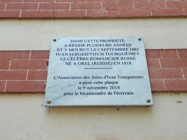 C’est dans le domaines des Frênes, lieu de résidence du couple Viardot, amis très proches de Tourgueniev, que ce dernier se fit construire sa datcha, achevée en 1874. L’écrivain y vécut durant neuf années, jusqu’à sa mort. Il y écrivit quelques-unes de ses œuvres, telles que « Terres vierges » ou ses « Poèmes en prose ».