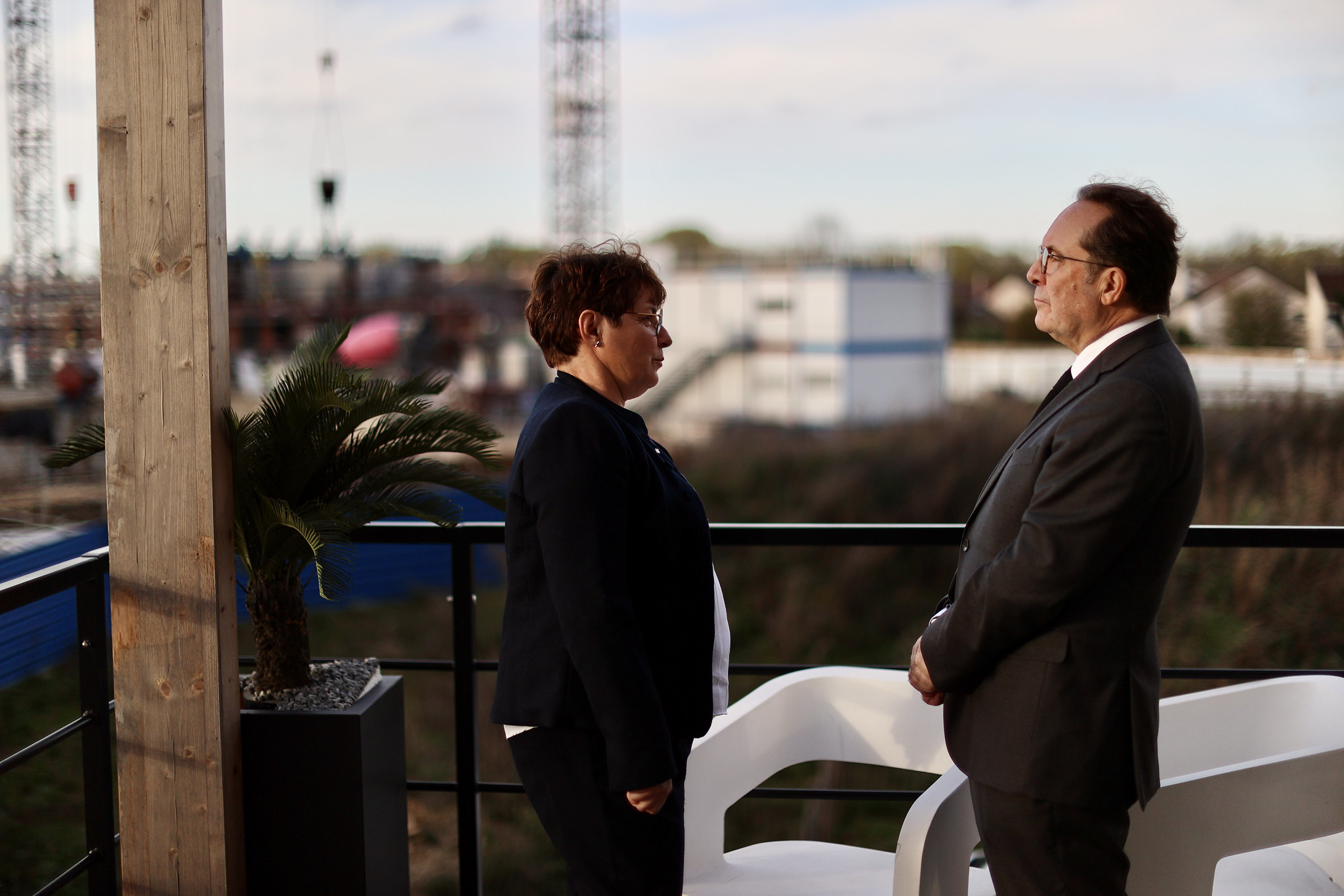 Pierre Bédier et Alexandra Rosetti, maire de Voisins-le-Bretonneux, à l’occasion de la rencontre du territoire sur le canton de Maurepas. CD78/N.Duprey