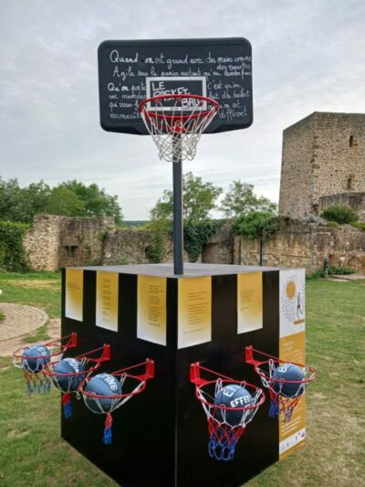 Dans un jeu de « cherche et trouve », le visiteur doit jouer avec les mots de poètes qui rendent hommage au basketball et au tennis de table…