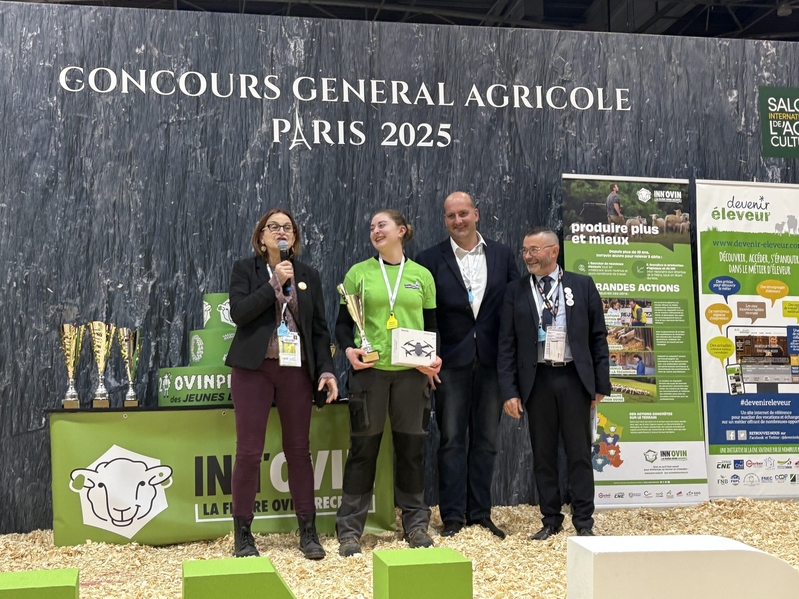 Jeanne Touzelet (ici en t-shirt vert) reçoit son prix de meilleure bergère au salon international de l’agriculture © INTERBEV ÎLE-DE-FRANCE