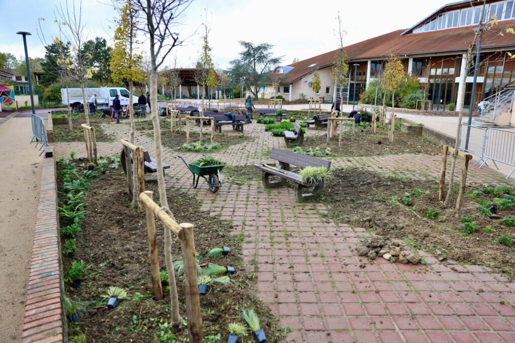 Grâce à ces aménagements, les élèves pourront se mettre à l’ombre, discuter tranquillement assis sur des bancs, s’installer autour d’une table, s’asseoir dans l’herbe voire même organiser des pique-niques à la pause déjeuner.