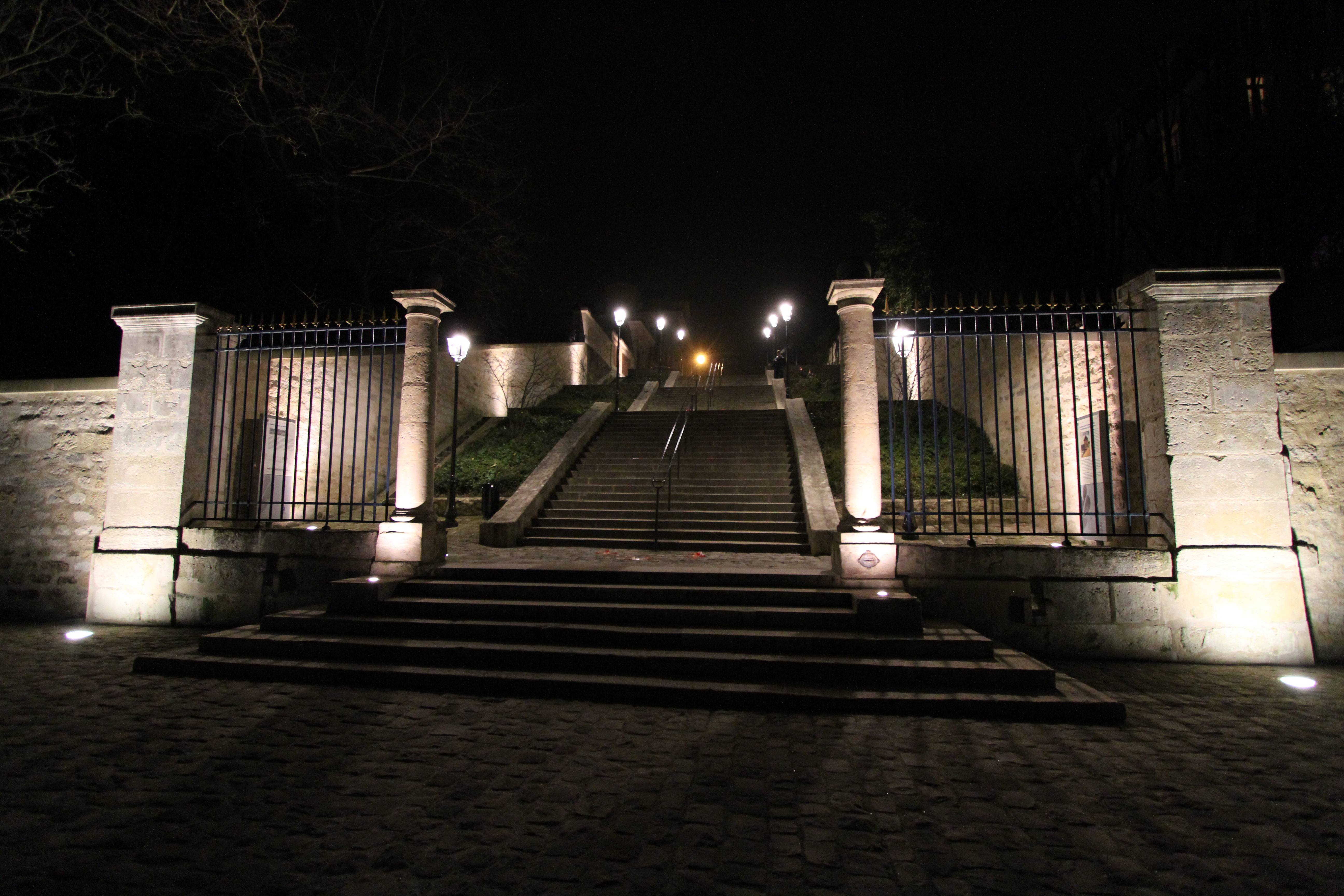 St Germain NordVestige de l’ancien Château Neuf, la rampe des Grottes est restaurée depuis 2009 par la Ville de Saint-Germain-en-Laye avec le soutien du Conseil général, de la DRAC (Direction régionale des affaires culturelles) et d’une souscription publique placée sous l’égide de la Fondation du patrimoine. Deux phases de travaux ont déjà permis de restaurer et aménager l’escalier, la grille centrale (rue Thiers) et les murs en retour sur la rampe. Le pavage des rampes et l’escalier nord ont ensuite été refaits et étanchéifiés, le terre-plein côté sud supprimé et l’ensemble a été mis en lumière (visible depuis la rive droite de la Seine). Le chantier va se poursuivre avec la restauration de la galerie dorique et du mur des Lions côtés nord et sud.