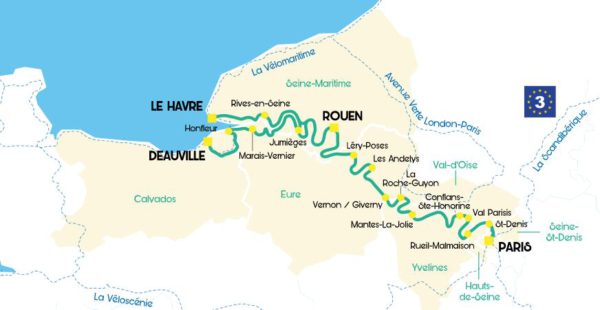 Les cyclotouristes connaissent « La Loire à Vélo » qui sillonne la façade atlantique. Ou « L’Avenue Verte », un circuit qui relie Paris à Londres. Aujourd’hui, ils peuvent enfourcher leur vélo et rejoindre la mer en Normandie par cette superbe vélo-route. De Paris à Rouen, l’itinéraire change souvent de rives et les traversées se font via des ponts et passerelles qui sont le plus souvent aménagés pour les cyclistes.