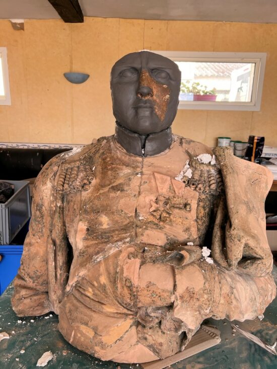 Restauration en atelier : travail de restitution de la tête de Napoléon en cours, ©CD78, Cécile Garguelle