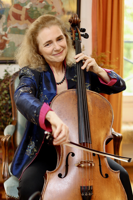 Dans le salon chaleureux, le violoncelle fabriqué en 1749, est là, près de la bibliothèque. C’est son « vieux compagnon », son souffle, sa voix. Elle se prête au jeu de l’interview tout en jouant du Schubert, Bach, Vivaldi…