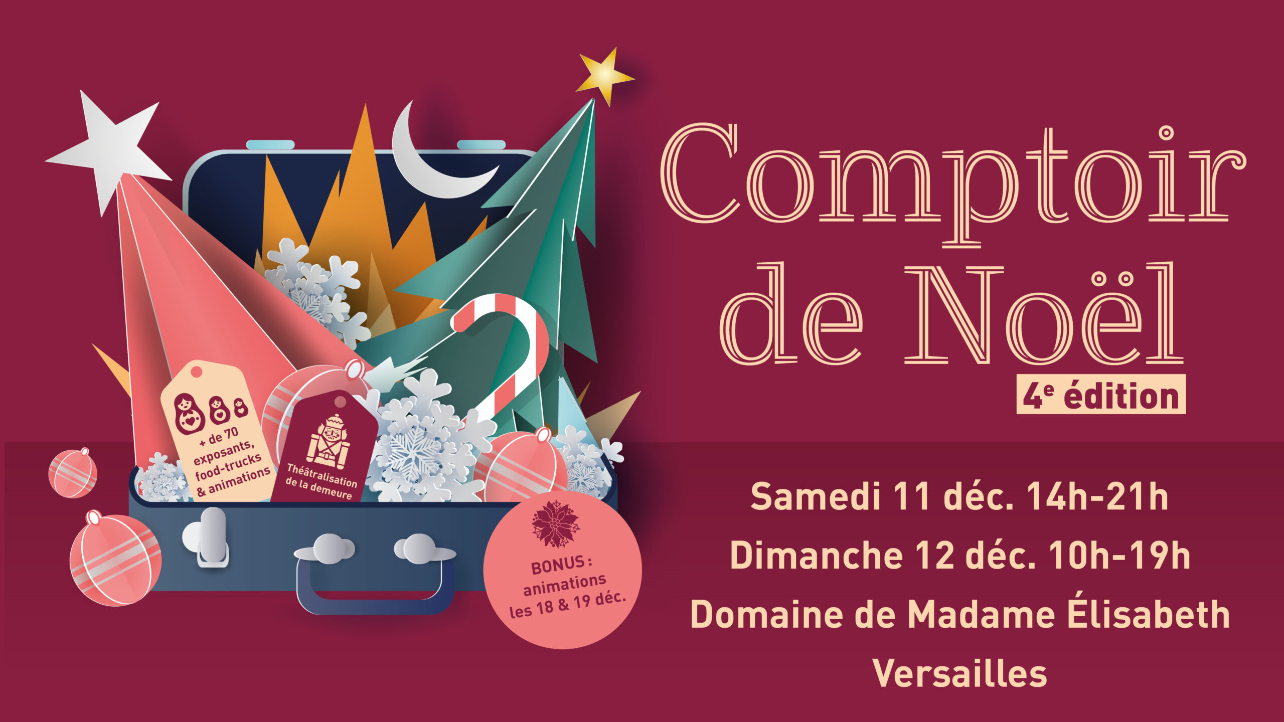 Les 11 et 12 décembre 2021 se tiendra, au Domaine de Madame Elisabeth, la 4e édition du Comptoir de Noël. Moment convivial idéal pour préparer les fêtes de fin d’année, le Comptoir de Noël fera la part belle aux artisans et commerçants locaux, qui présenteront leurs produits et savoir-faire.