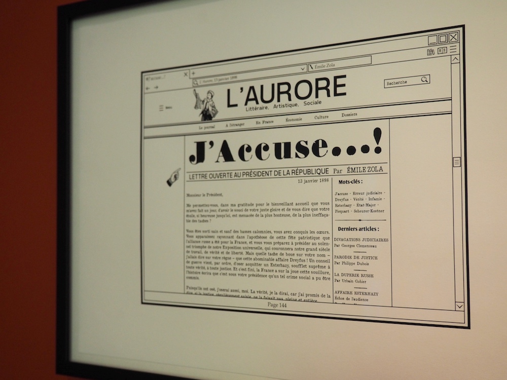 Au milieu du musée, une salle est consacrée à une interprétation contemporaine de l’Affaire Dreyfus. Jean Dytar et sa BD « #J’Accuse…! » ouvrent le bal et permettent une nouvelle approche de l’Affaire. Philippe Oriol nous explique :