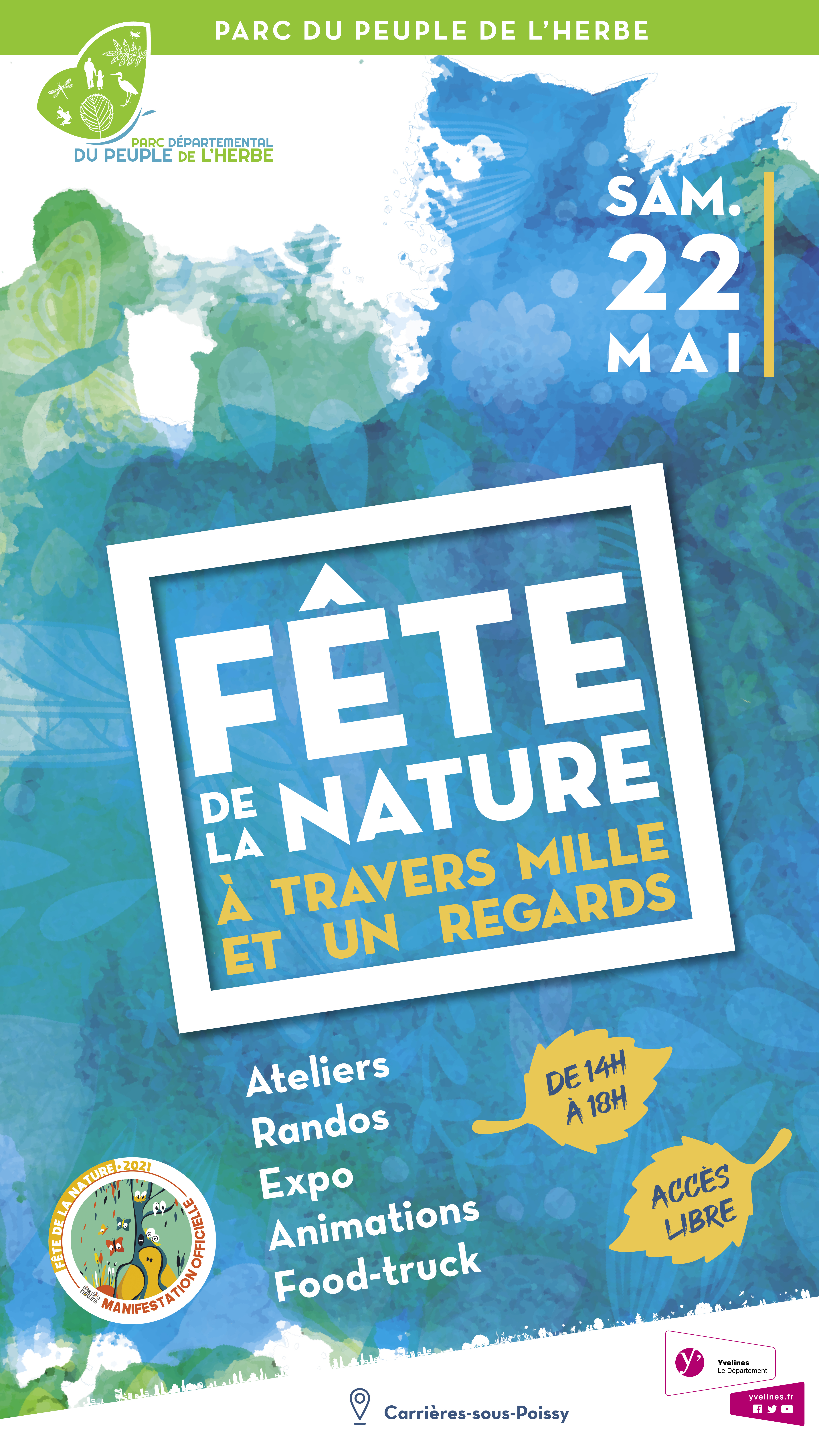 Sur le thème « À travers mille et un regards », le parc départemental du Peuple de l’herbe à Carrières-sous-Poissy accueillera, le samedi 22 mai 2021, la Fête de la nature. Au programme : des activités gratuites autour de la nature comme des ateliers, randonnées, expositions et explorations en tous genres.