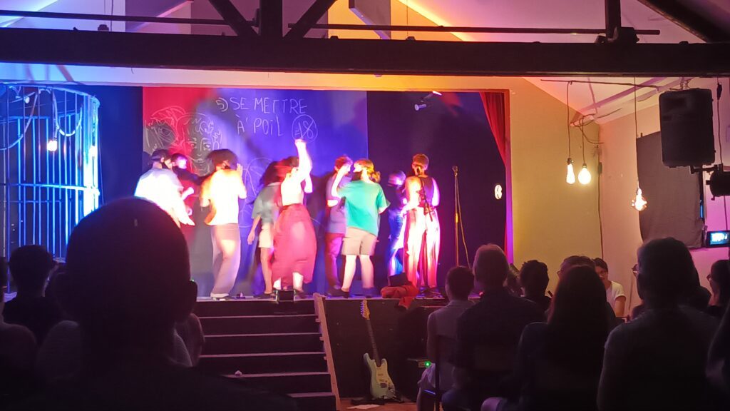 La pièce jouée cette année « Ici, c’est la place du titre » a mis en lumière les talents artistiques de chacun. La performance oscille entre humour et gravité, cabaret et théâtre intimiste. Des tranches de vie pleines de surprises. Avant chaque représentation, le public a été invité à des ateliers (maquillage, chant, danse, acrobaties…).