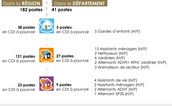 Ces futurs salariés viendront renforcer les équipes déjà sur le terrain pour mener à bien des prestations de garde d’enfants à domicile, d’entretien du domicile et d’aide et d’accompagnement à domicile pour les personnes âgées ou en situation de handicap.