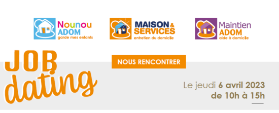 A Epône, Plaisir, Versailles, Rosny-sur-Seine et à Maisons-Laffitte, l’entreprise ADOM souhaite recruter 41  collaborateurs pour répondre à la demande croissante de prestations de gardes d’enfants à domicile, de ménage, d’aide et d’accompagnement à domicile. Rendez-vous le 6 avril pour un grand job dating.