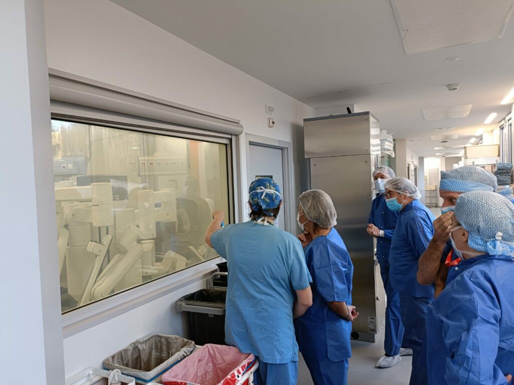 l’hôpital Mignot, le président s’est rendu au bloc opératoire pour découvrir le fonctionnement du nouveau robot chirurgical. CD78