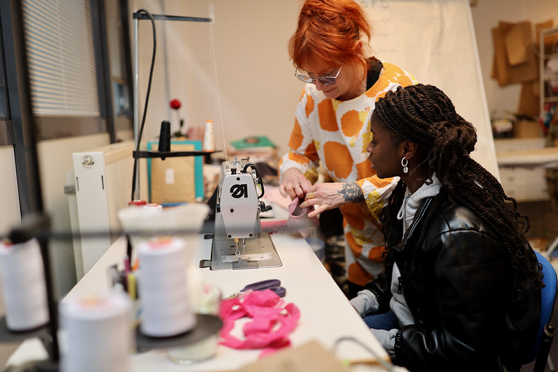 Les Enchanteuses ne doutent pas de leur engagement, de leurs choix, de leur entreprise et encore moins de leur passion – ça non ! Elles doutent d’y arriver, de pouvoir continuer. Car si leur projet de revalorisation de textiles (upcycling en anglais), qu’elles transforment en accessoires de mode, s’inscrit pleinement dans l’économie circulaire, et donc dans des problématiques on ne peut plus actuelles de consommation durable, encore faut-il pouvoir en vivre. L’argent reste malgré tout le nerf de la guerre, alors pour mettre toutes les chances de leur côté, les deux enchanteresses ont repris une activité annexe, pour diminuer les charges qui pèsent sur leur entreprise qu’elles maintiennent à flot, contre vents et marées.