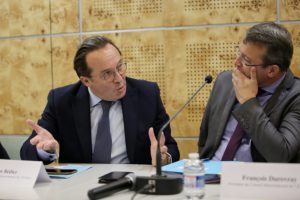 Pierre Bédier, président des Yvelines, aux côtés de François Durovray, président de l’Essonne. © CD78 / N.Duprey